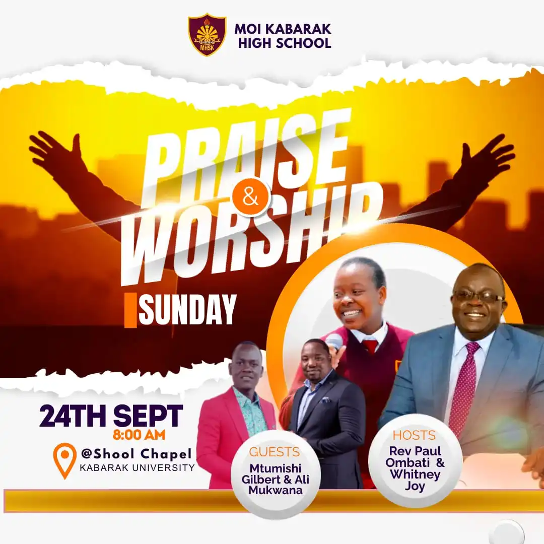 Get ready for an incredible experience at “Praise & Worship Sunday” hosted by Rev. Paul Ombati & Whitney Joy. We’ll gather at Kabarak University School Chapel for a powerful time of praise and worship.